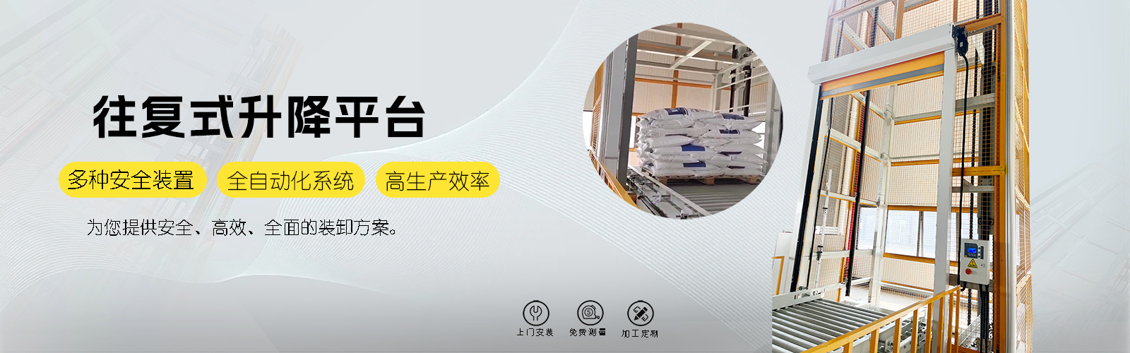 往復(fù)式提升機(jī)是由鏈條帶動,通過變頻調(diào)速控制電機(jī),便提升轎廂上下往復(fù)運動.提升轎廂上配有傳動機(jī)構(gòu),以便被輸送物自動進(jìn)入升降機(jī)的提升轎廂上。該類提升機(jī)具有控制先進(jìn),性能可靠,提升轎廂定位精度高等特點。